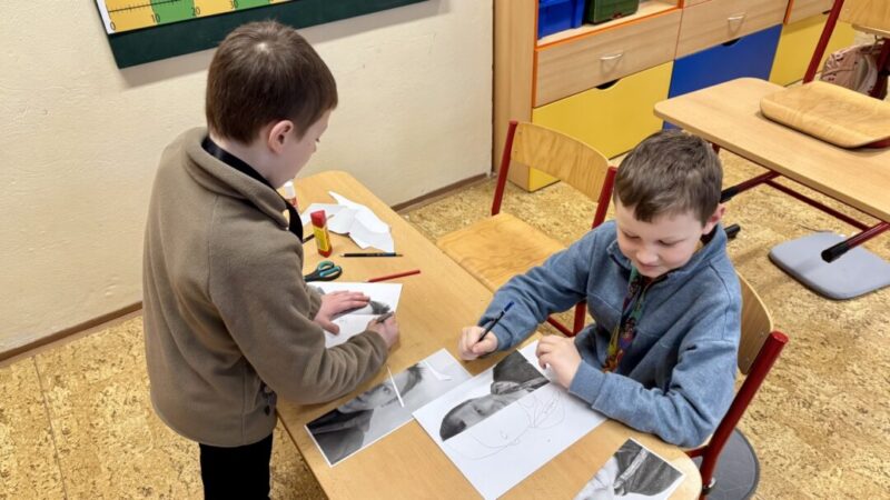 Tentokrát jsme si v družině vytvořili portrét. S dokreslením obličeje jsme se statečně a velmi dobře poprali a s výsledkem jsme mooooc spokojeni. Dětem se to moc povedlo.